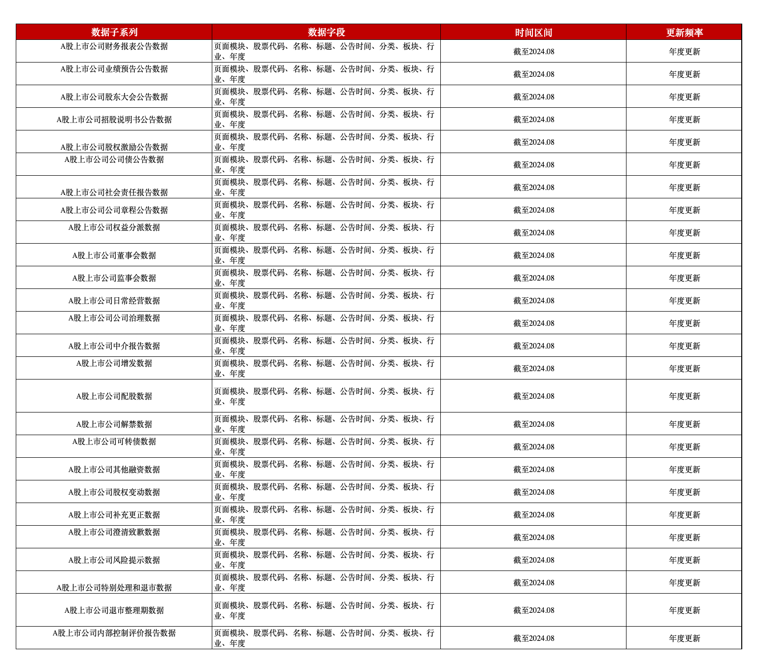 A股上市公司全部公告数据