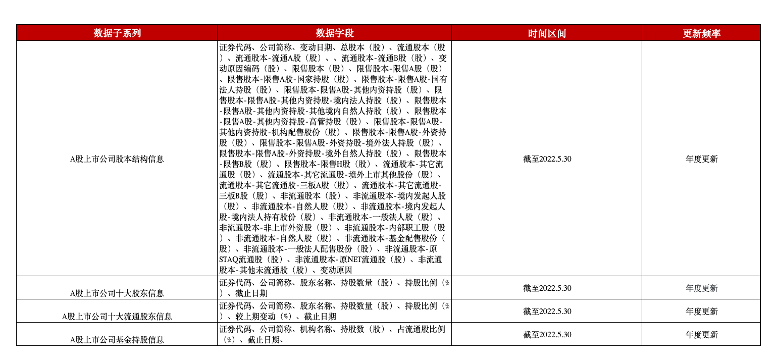 本平台推出A股上市公司股东信息数据,展现了上市公司历年来股东的各方面信息,包含股本结构、十大股东、十大流通股东、基金持股等表格。