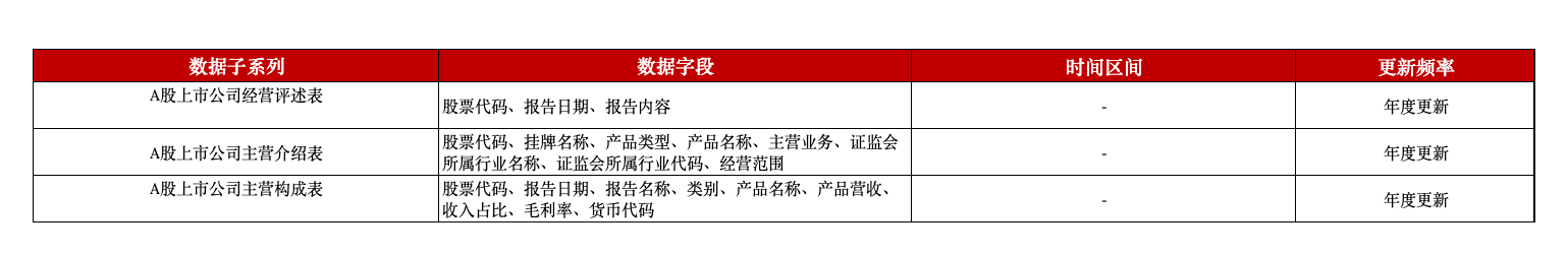 A股上市公司主营业务详情数据