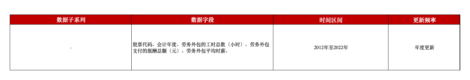 本平台推出A股上市公司劳务外包报酬数据,包含了A股上市公司截至2022年的劳务外包报酬相关信息。