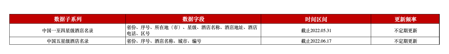 中国星级酒店名录数据