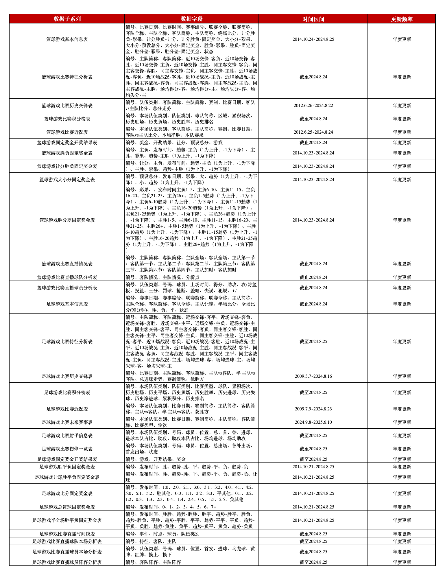中国篮球和足球体育彩票信息数据