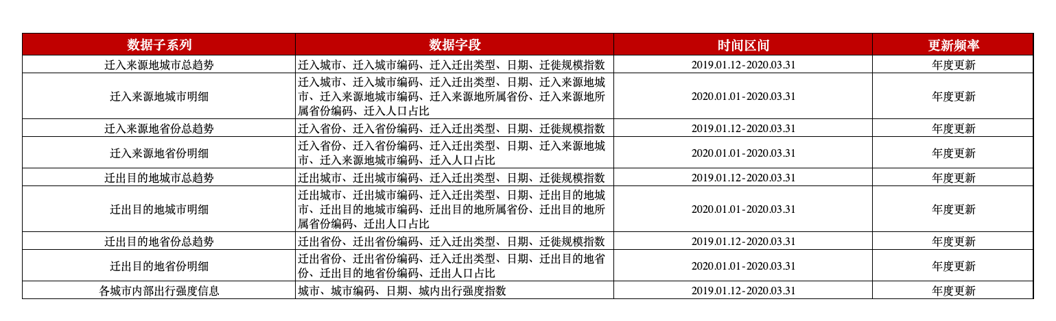 本平台数据团队推出人口迁徙大数据,包含各地区迁入来源地信息、各地区迁出目的地信息和各城市内部出行强度信息三个子模块,涵盖迁入和迁出城市、省份的总趋势和迁入迁出明细数据,为相关研究提供了优质的大数据样本。