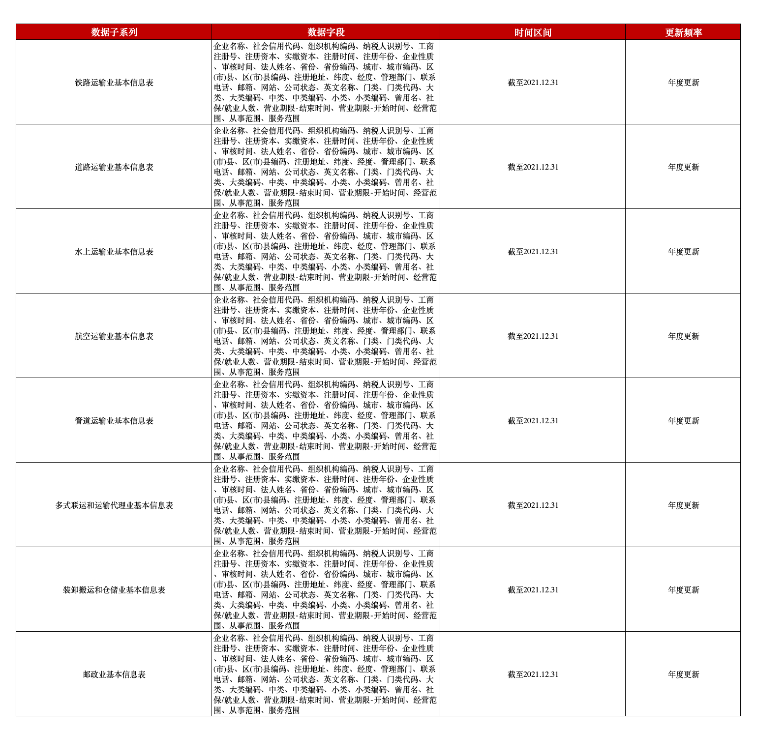 交通运输、仓储和邮政业工商注册企业基本信息数据
