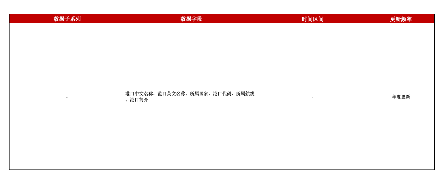本平台推出全球港口信息数据,包含全球两百多个国家及对应四千多个港口的中英文名称、代码、所属航线、所属国家、简介等基本信息,为相关研究助力。