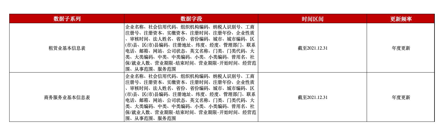 租赁和商务服务业工商注册企业基本信息数据