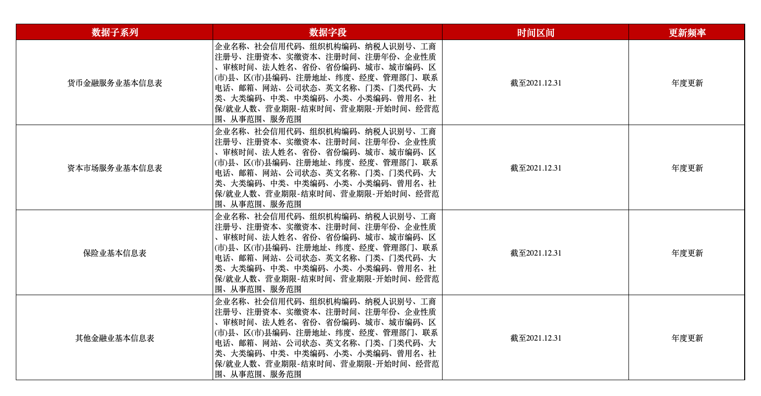 金融业工商注册企业基本信息数据