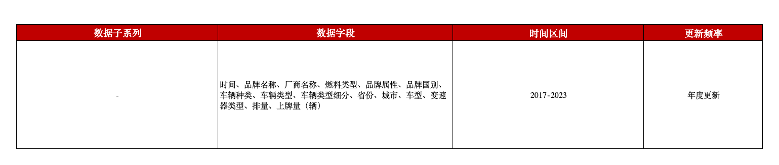 除各省市的汽车上牌情况外,数据库还对应整理提供了上牌车辆的品牌、型号等车系简述相关的内容。因此,除了能够了解到各地区新车上牌情况,还能有助于增强进行品牌市场分析、消费者购车偏好等方面的了解。