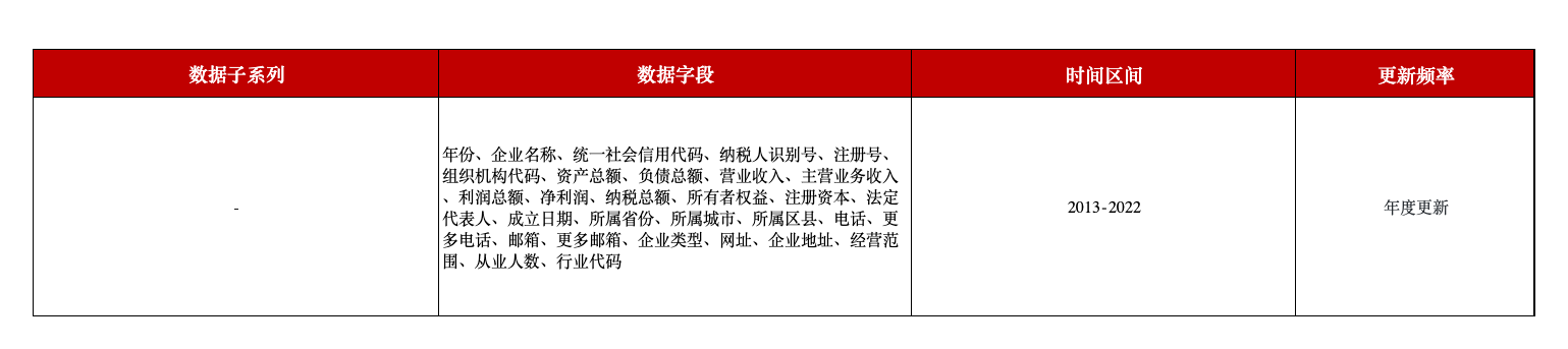 为支持相关领域研究,本平台推出数千万级别的中国工商注册企业财务报表数据,包含了近十年的工商注册企业财务报表数据及工商基础信息,字段包含年份、企业名称、纳税人识别号、资产总额、负债总额、营业收入、主营业务收入、利润总额、净利润等字段,信息量极全。