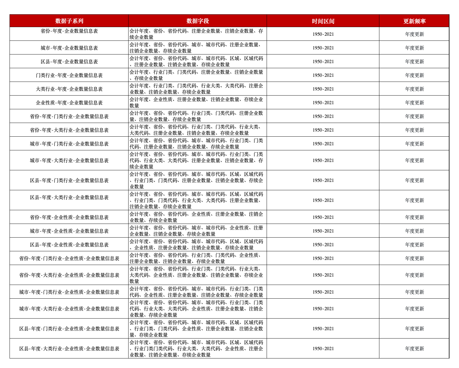 中国工商企业进入退出信息统计数据