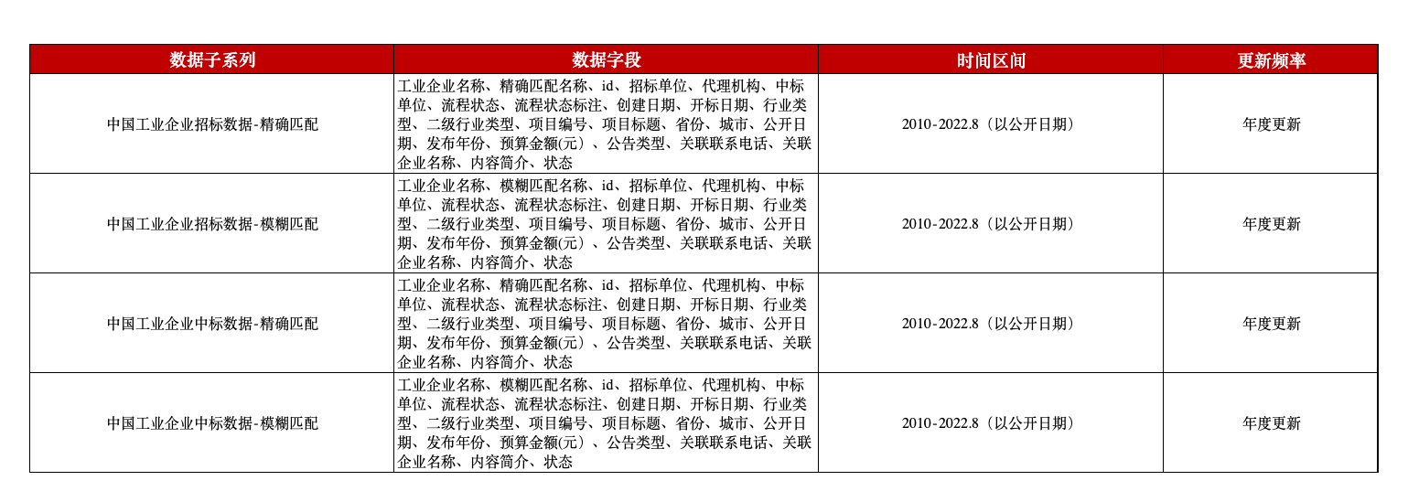 中国工业企业招投标数据