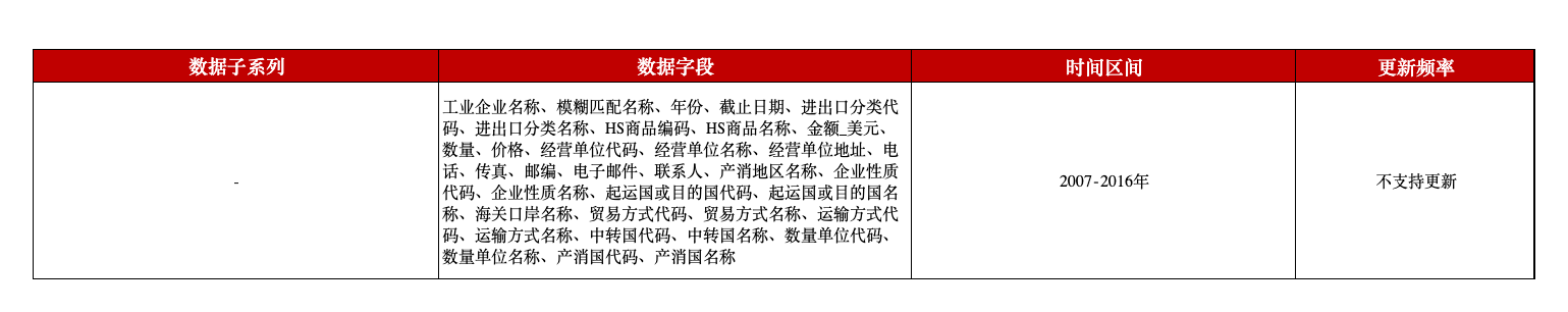 本平台将中国工业企业名单(1998-2013)与中国海关进出口数据中的经营单位名称字段进行匹配,得到了中国工业企业海关进出口交易明细数据。本数据涵盖工业企业名称、年份、HS商品编码、金额_美元、数量、经营单位名称、产消地区名称等字段,可以为相关研究提供数据支持。
