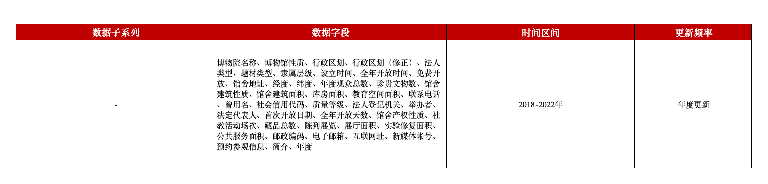 本平台推出全国博物馆年度报告信息数据,涵盖自2018年以来的全国各级博物馆年度报告信息,包含博物馆名称、博物馆性质、设立时间、年度观众总数、珍贵文物数等字段,还提供了各博物馆的经纬度信息,为相关研究助力。