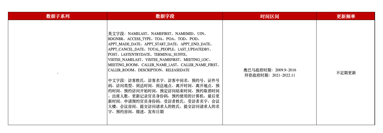 白宫访客日志数据