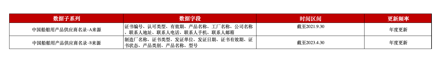 因此,建设一艘大型船舶需要与多个船舶用产品供应商建立密切合作关系。以此为契机,本平台推出中国船舶用产品供应商名录数据,汇集两个不同来源的船舶用产品供应商信息,为国际贸易以及相关研究提供数据支持。