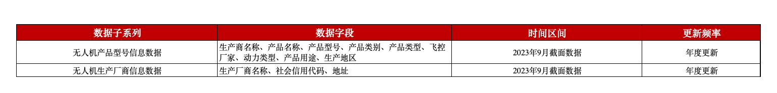 无人机产品和生产厂商信息数据