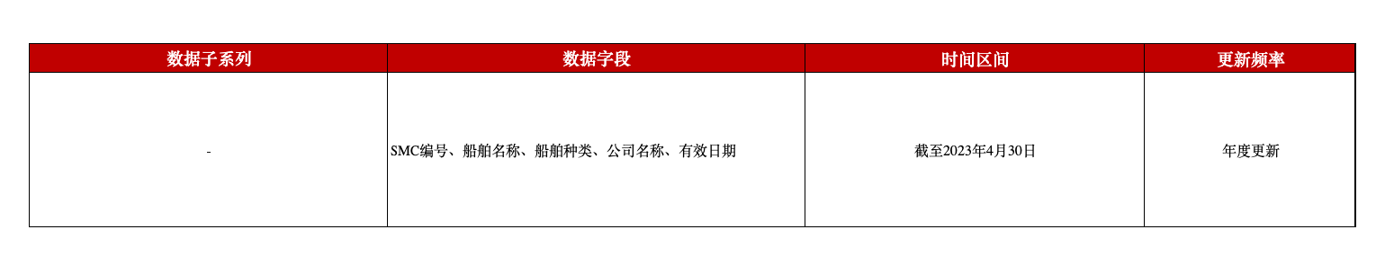 本平台推出持有SMC船舶名录数据,包含SMC编号、船舶名称、船舶种类、公司名称、有效日期等字段,为相关研究助力。