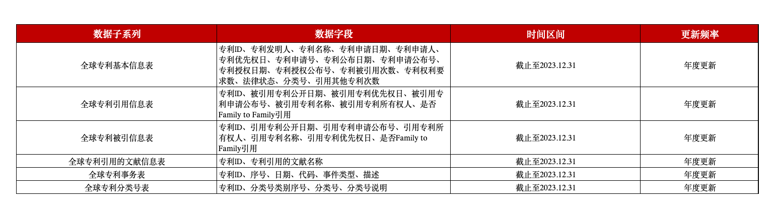 在创新形式多变的今天,采用单个指标研究创新议题已经不合时宜,更加微观的专利数据是学术研究的大势所趋。本平台联手第三方推出全球专利数据,囊括全球多个国家的专利信息,包括发明专利、实用新型专利和外观设计专利等。具体地,我们把表格分为专利基本信息表、专利引用信息表(外观设计无引用表)、专利被引信息表、专利被文献引用表、专利事务表、专利分类号表等六大模块,字段完整,结构合理,为此研究领域提供了更加全面、坚固的数据支撑。