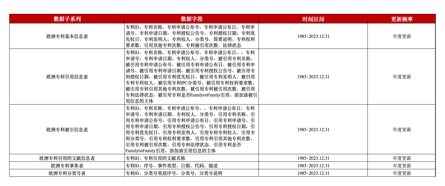 本平台对欧洲专利信息数据进行专项整理,单独成库,为相关研究提供详细、完整的数据支撑。