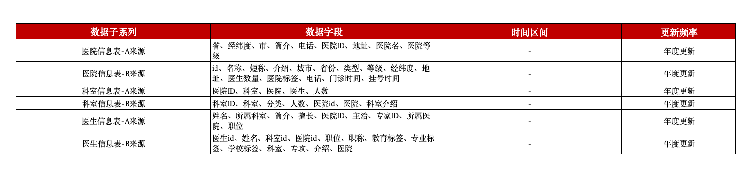 基于此,本平台数据团队推出医疗信息大数据,本数据共包含两个版本的医疗信息,各版本均包含医院信息、科室信息和医生信息三张子表,涵盖医院的详细位置、医院等级;科室的名称、所属医院和医生人数;以及医生的个人简历、主治领域、医师级别等信息,为相关研究提供了优质的大数据样本。各版本在字段、数据量方面均有不同,学者可根据自身研究需求自由选择。