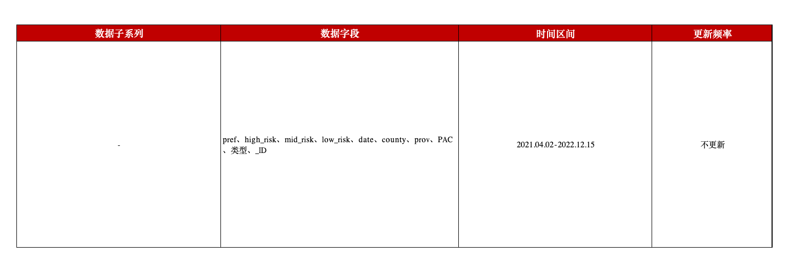 本平台获得了香港大学ESG研究所严安冬博士及其合作者的许可,将该数据收录于公共数据专区,以便各位学者浏览阅读,下方可下载完整数据,该数据集以及部分备注信息也可通过该网址获得(https://github.com/dadasmash/China_COVID_Risk_Level_Dataset)。