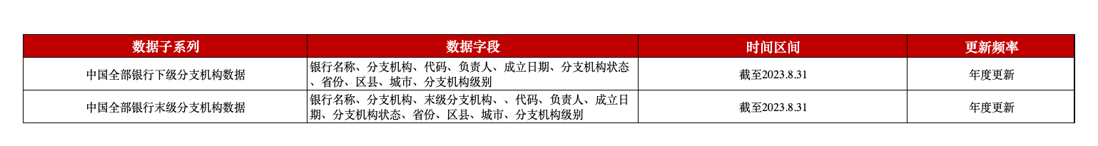 中国全部银行分支机构数据