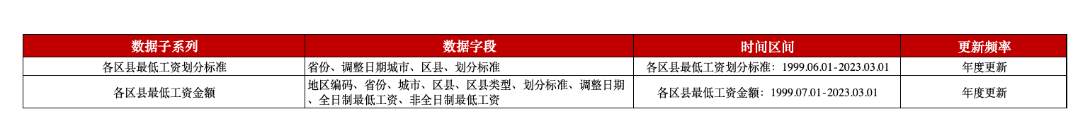 本平台数据团队推出各地区最低工资数据数据库,包含各区县最低工资划分标准、金额和调整日期。