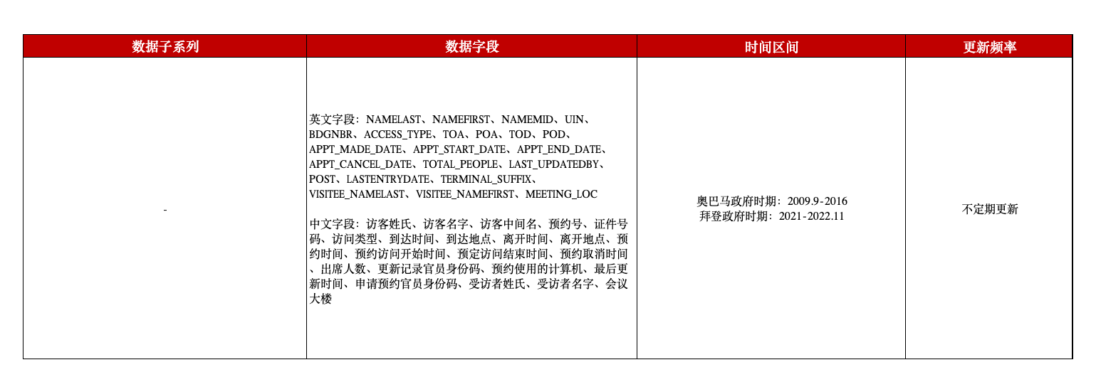 白宫访客日志数据