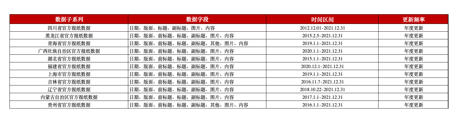 中国各省份官方报纸数据