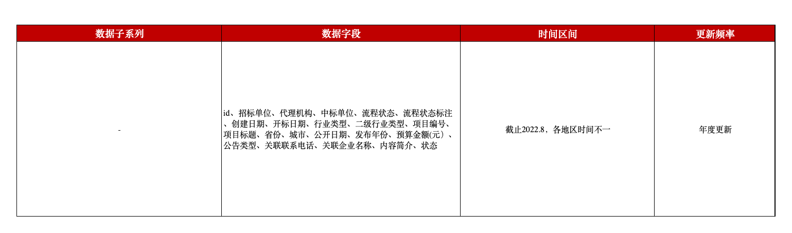 本平台中国各地区招投标数据综合了百余个招投标网站的招投标信息,总数据规模达5800万+,不仅覆盖了各地区的招投标平台,还包含了大量非官方平台的招投标信息,完整展现了招标、投标的过程情况,是不可多得的优质微观数据。