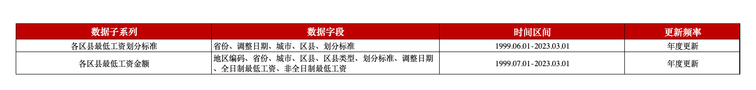 本平台数据团队推出各地区最低工资数据数据库,包含各区县最低工资划分标准、金额和调整日期。