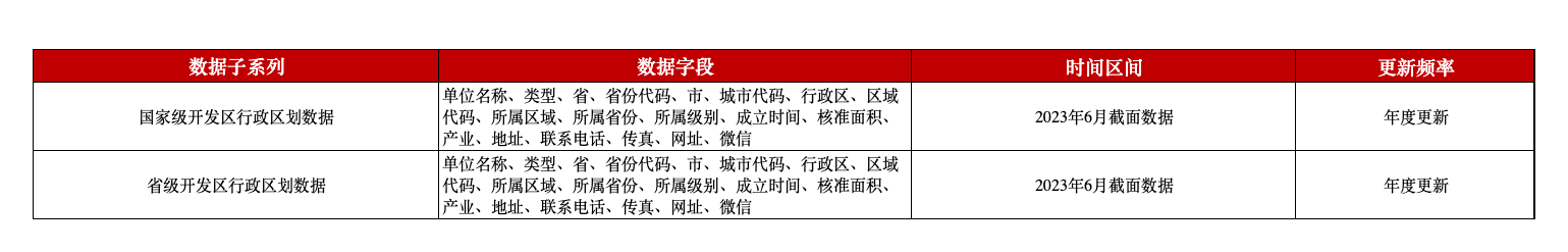 中国开发区行政区划数据