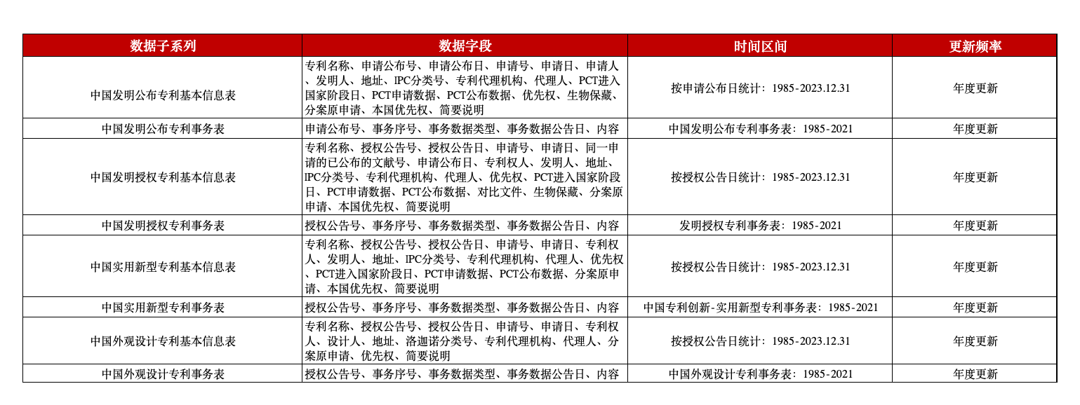 根据上述规定,我们的专利申请与授权数据库按照发明公布、发明授权、实用新型、外观设计等四个类别分表列示,并保留了各个专利的所有指标内容。