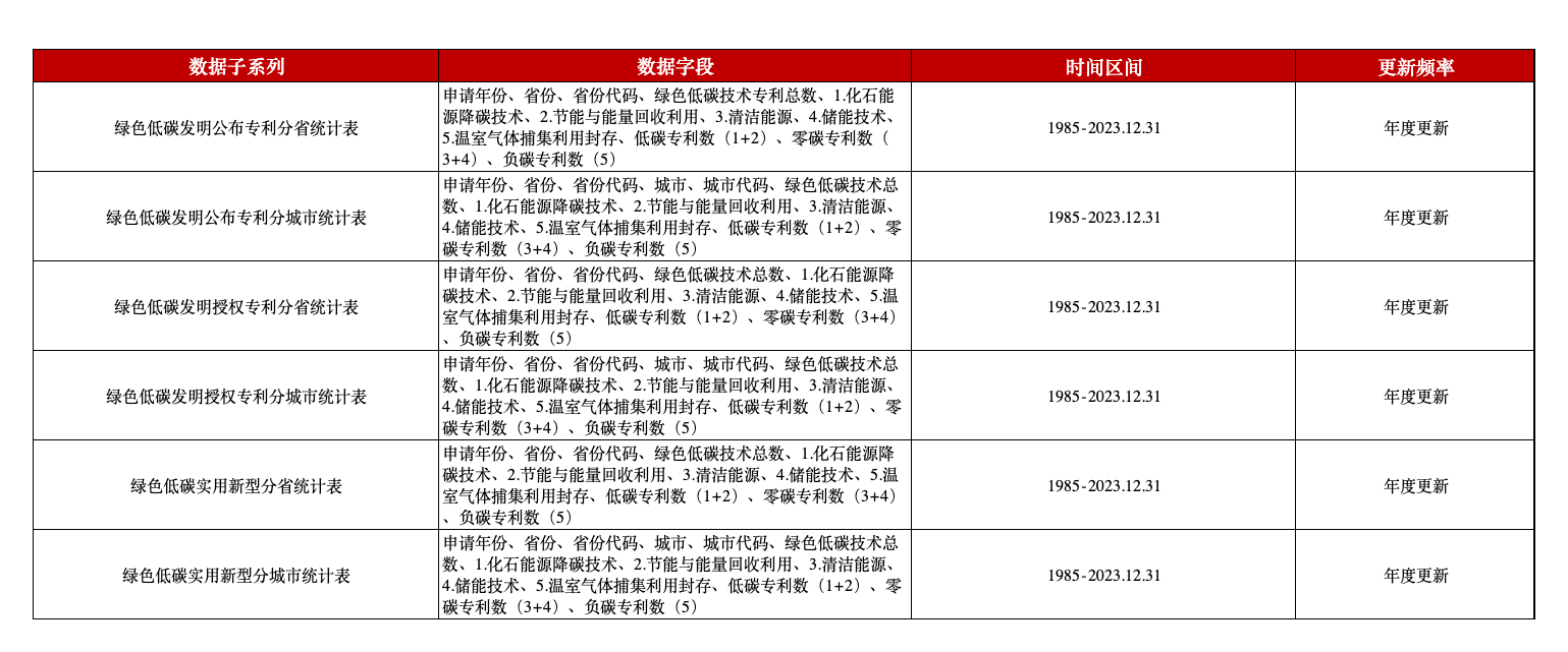 本平台数据团队推出的中国绿色低碳专利分地区统计数据以国际专利分类体系为基础,分为发明公布专利、发明授权专利、实用新型专利三部分,分设专利分省统计表和专利分城市统计表,覆盖全国31个省及直辖市,涉及350多个地级市。
