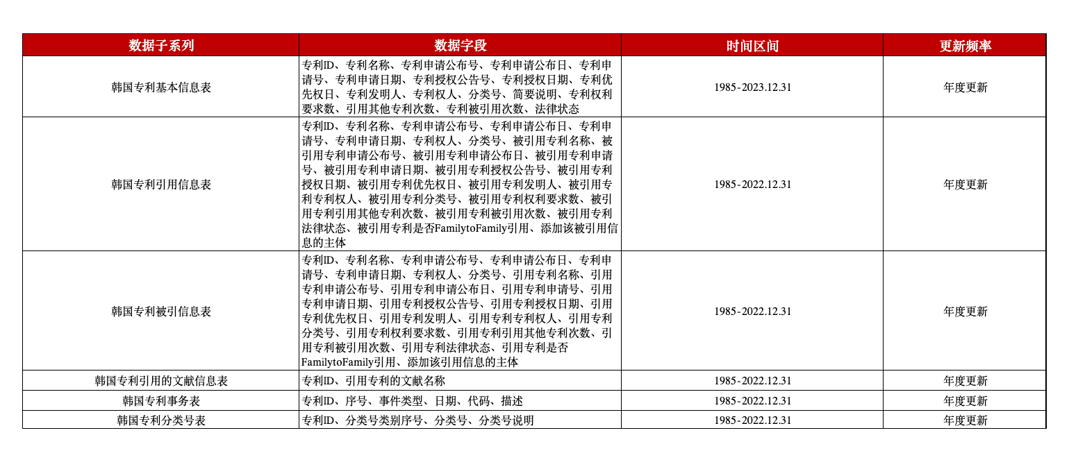 本平台对韩国专利信息数据进行专项整理,单独成库,为相关研究提供详细、完整的数据支撑。