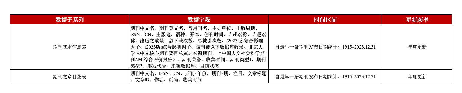 中国期刊信息数据
