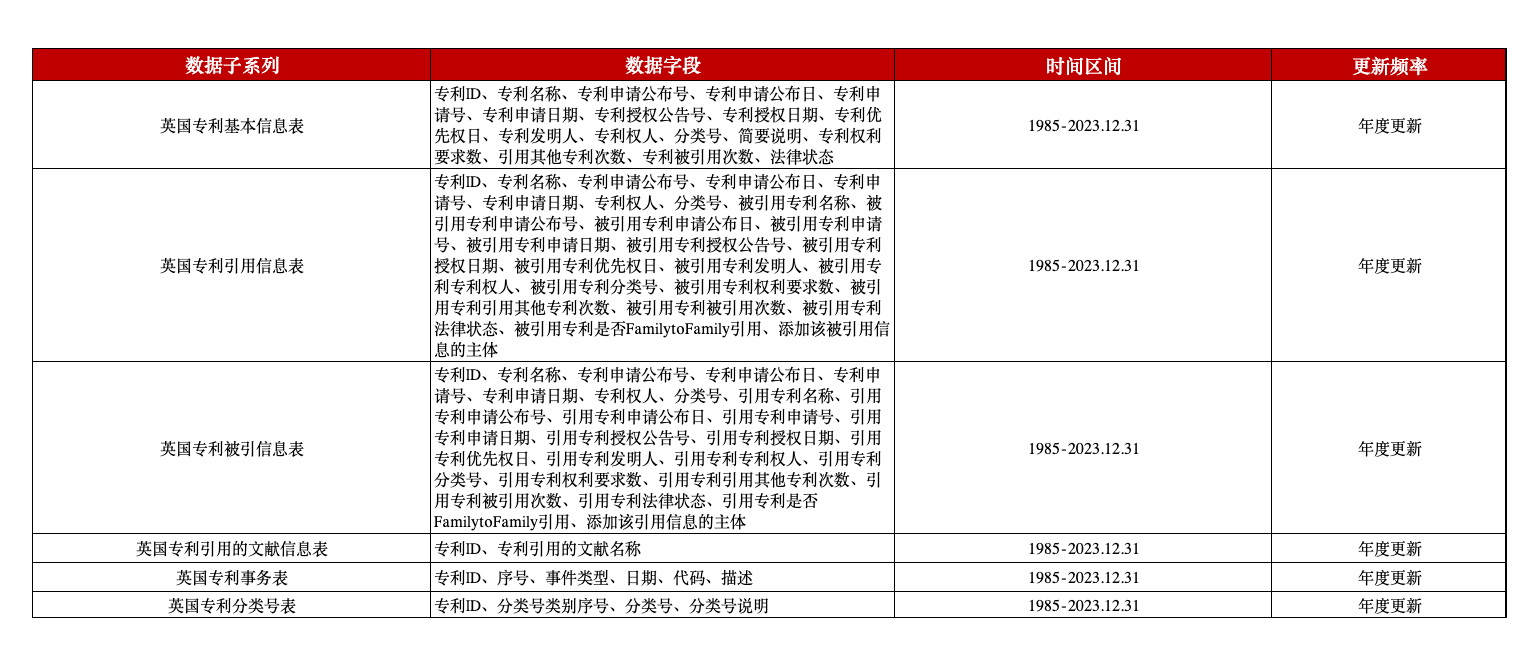 英国专利及引用被引用数据